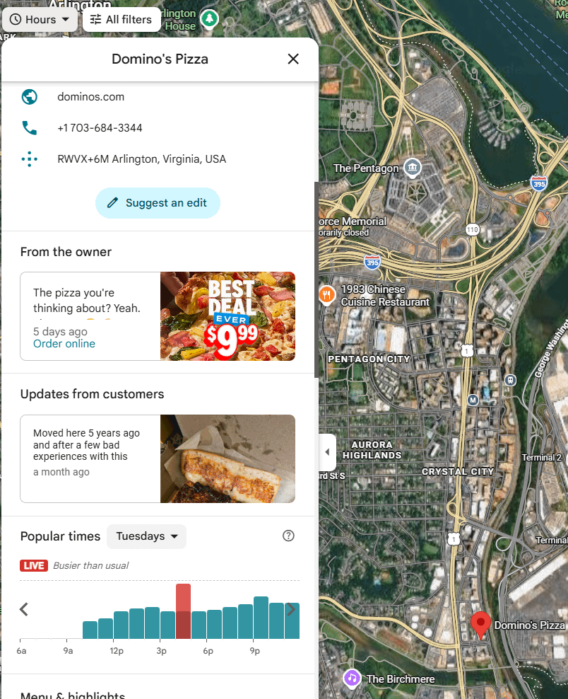 You realize it’s possible that at any given time that location has 3 people in it, and at this point in time there were 6 trying to get crappy pizzas? Your puts are more fucked than not.
