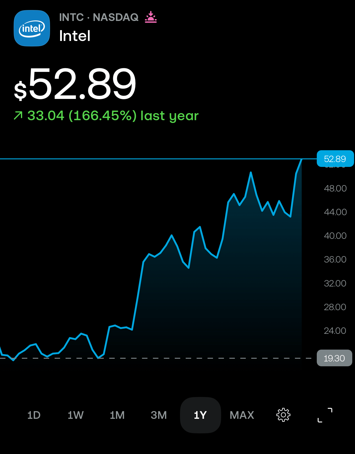I was telling everyone I could to buy Intel when it was $18. I pleaded with family to believe me it was undervalued. But I am too chicken shit to invest outside my 401k. So I missed the ride.
