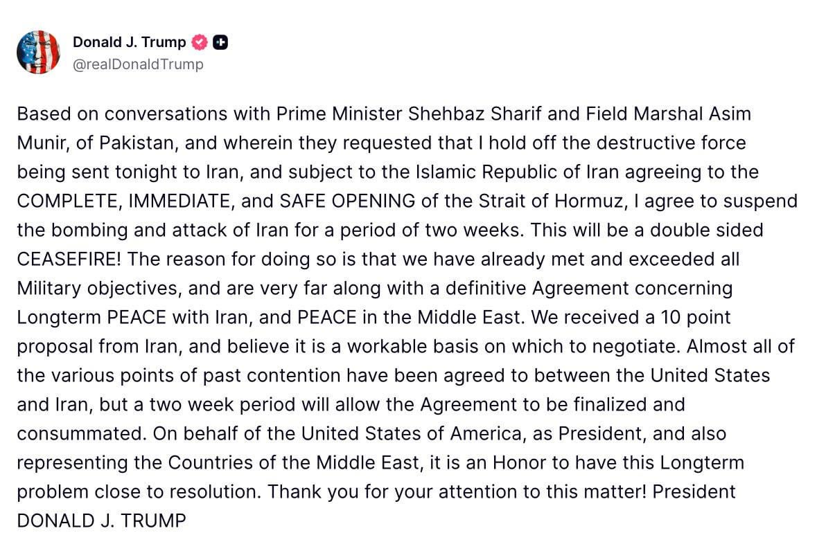 TACO Trump folds like a cheap suit, just as I knew he would. But with Israel still free to bomb at will, are the Iranians going to accept a 2-week ceasefire? What about their attacks on Saudi Arabia, Kuwait, UAE, etc.?