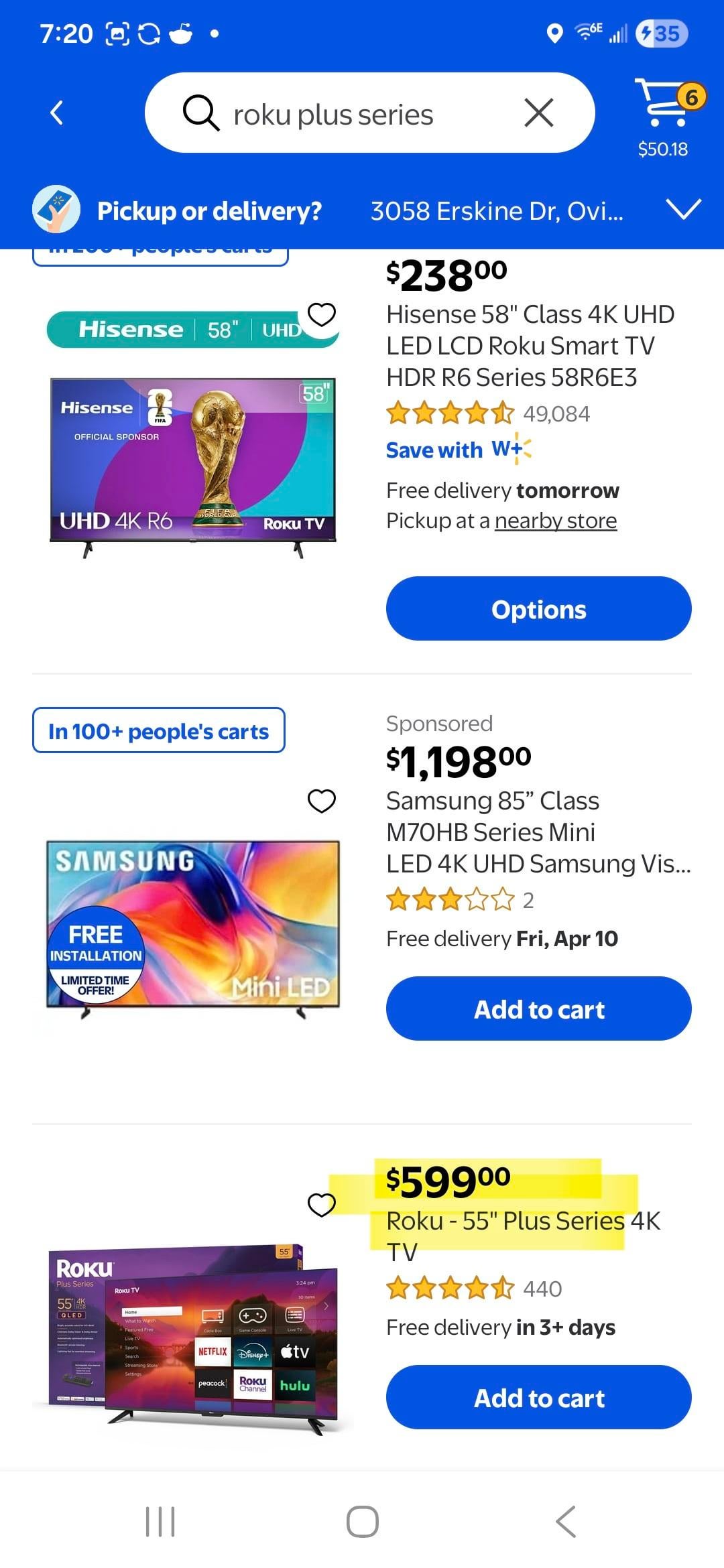 Was shopping for a 55” Roku Plus Series TV and saw it for $599 in the Walmart app.
