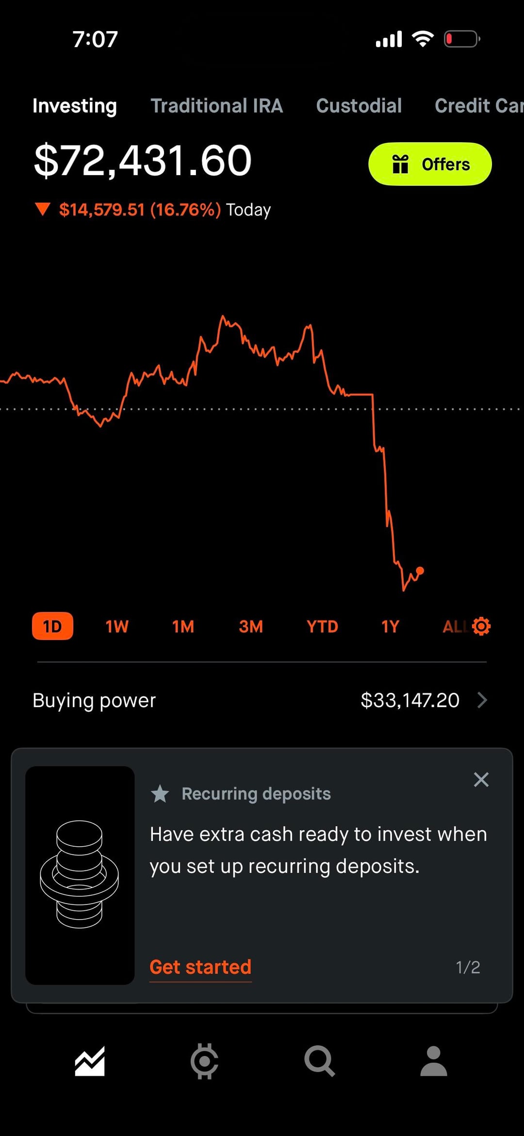 You and me both. I was up 30% YTD and will probably fall back to where I started because I got greedy.