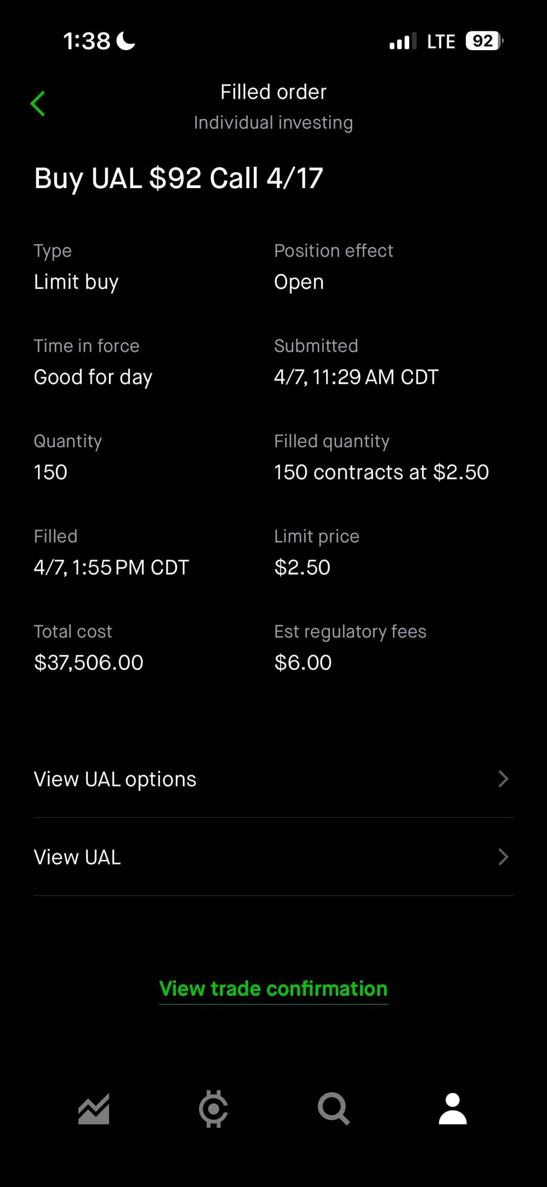 150x $92 c @ $2.50 4/17/2026