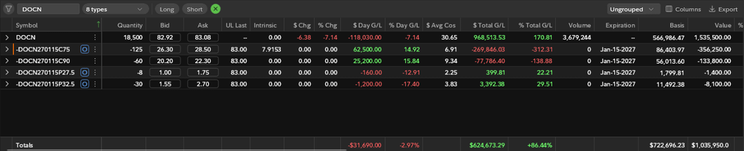 I made a YOLO post about 8 months on DOCN: https://www.reddit.com/r/wallstreetbets/comments/1miaqt7/docns_time_to_shine_50000_shares_1600000_yolo/