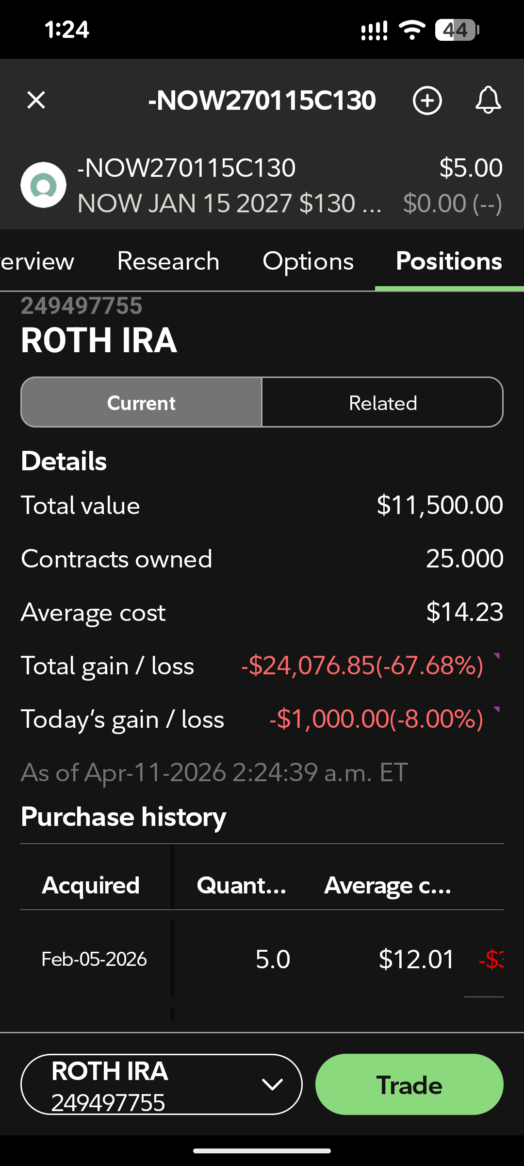 Will be rolling NOW calls lower to $100 strike price to get better delta exposure