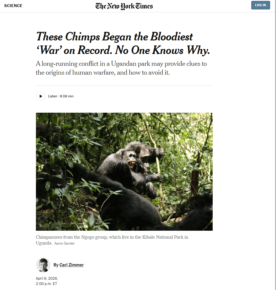 This is some high quality Alpha Source: https://www.nytimes.com/2026/04/09/science/chimpanzees-war-ngogo-uganda.html https://i.redd.it/6uwq41kyrkug1.png Posted by AnTRopy69