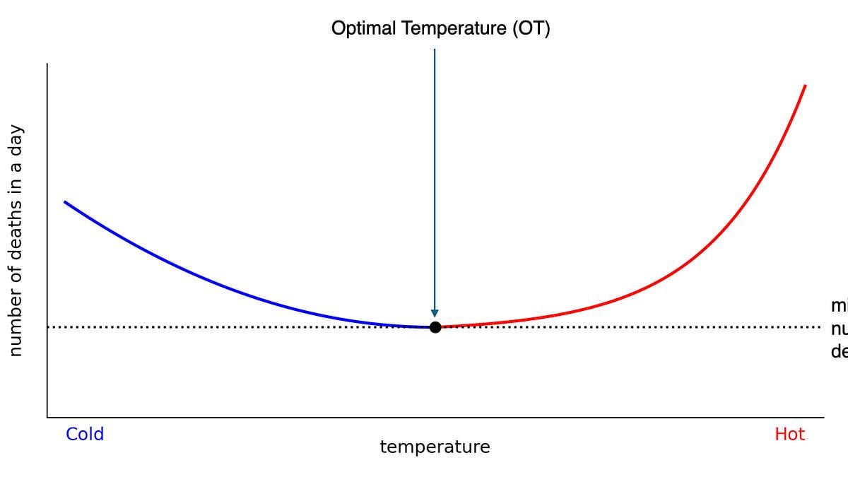 This graphic is a good start and will no doubt be refined in the future. One tweak I’d like to see is the addition of shading and/or a Z axis. The problem is one of attribution. For cold, hypothermia is a direct killer, but how do you tease out the signal from cold stress triggering a cardiac arrest? Same goes with heat. Heatstroke is a direct killer, but what if just being hot triggers a stroke?