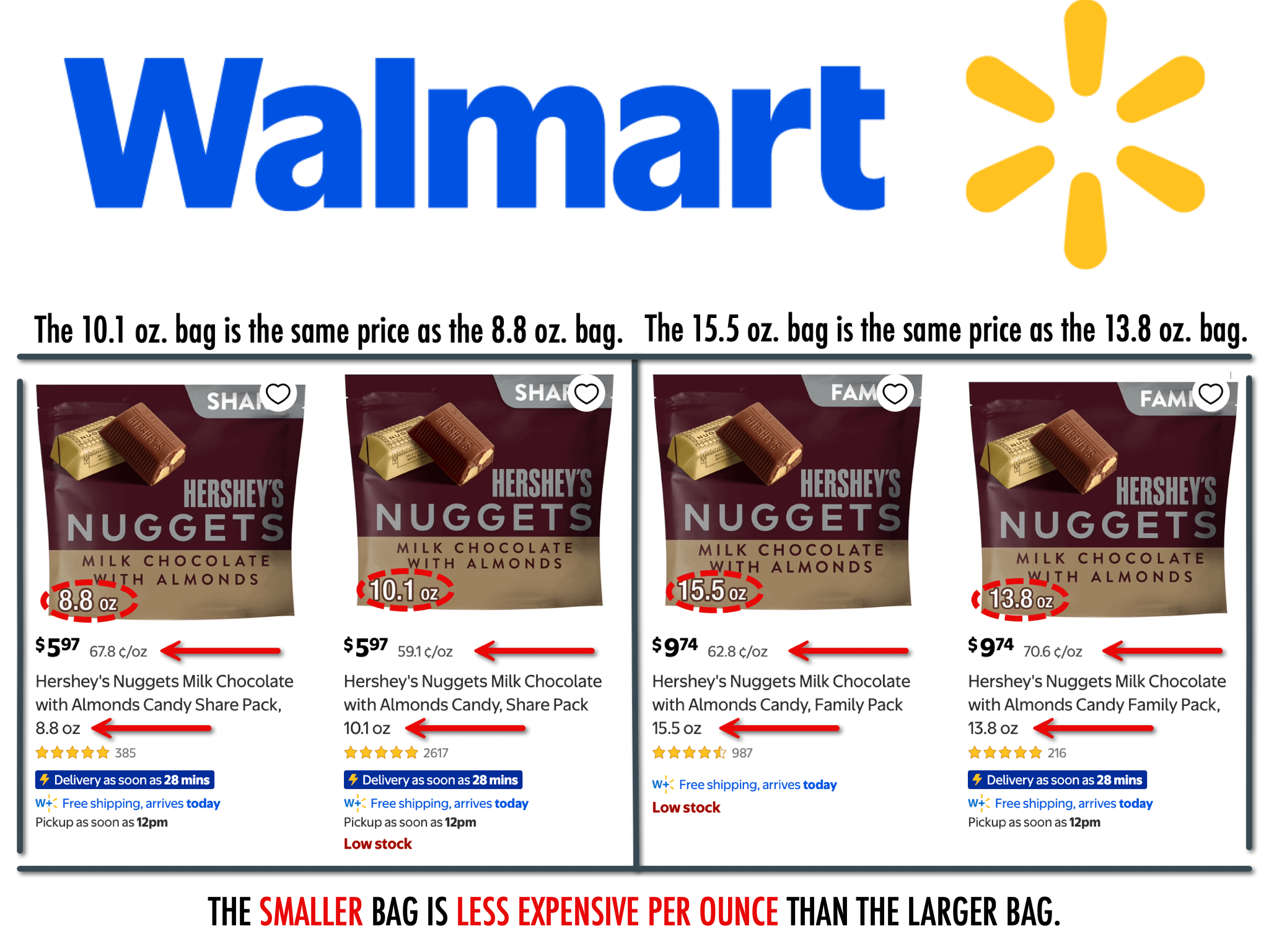 However, the real take-away here is that the price per oz. is actually lower on the smaller bag than on the larger bag.