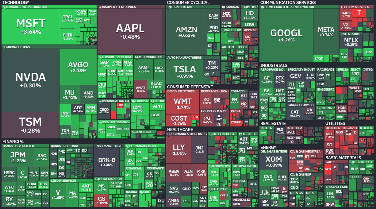 the Dow Jones Industrial Average gained 0.63% (+301.68 points) to close at 48,218.25,