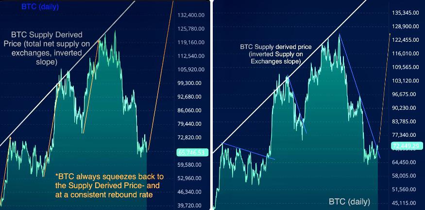 BTC has broken above multi-month resistance, which has always previously accelerated the squeeze back to the supply derived price (currently above $140,000 … even before momentum buying on the way back up)
