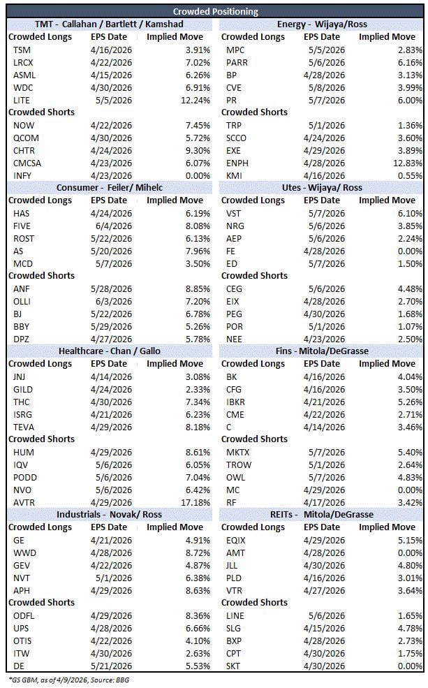 2. There are tickers and implied moves. Crowded long usually means expectations into earnings very high and any small disappointments or missing boogey (whisper) numbers might cause stock to sell off sharply. Upside is more capped unless it’s crazy print. High chance of sell the news etc. Crowded shorts are usually where you have very little expectations from earnings and usually worse is priced in so high chance of dumb print sending it higher. Puts still can print but getting trapped is likely. Crowded longs and shorts usually the ones moves most so pay attention. There are also tiers of how crowded stocks into earnings 1 to 10 but that’s too much into for you all.