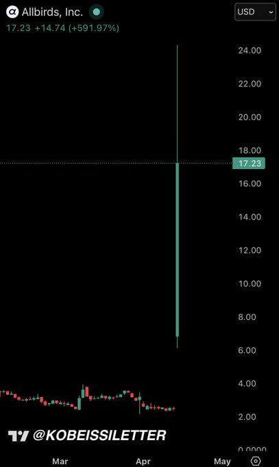 📉 Yesterday, Allbirds’ stock $BIRD fell 99% from its all-time high, with the footwear company on the verge of collapse.