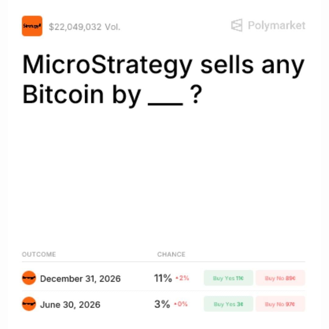 Polymarket traders give 12% chance that Strategy sells Bitcoin this year