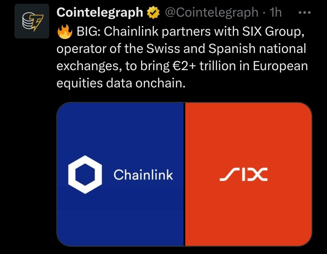 Chianlink partners with SIX group operator to bring €2 trillion in Europe equities data onchain https://i.redd.it/75rpk23jdhvg1.jpeg Posted by CymandeTV