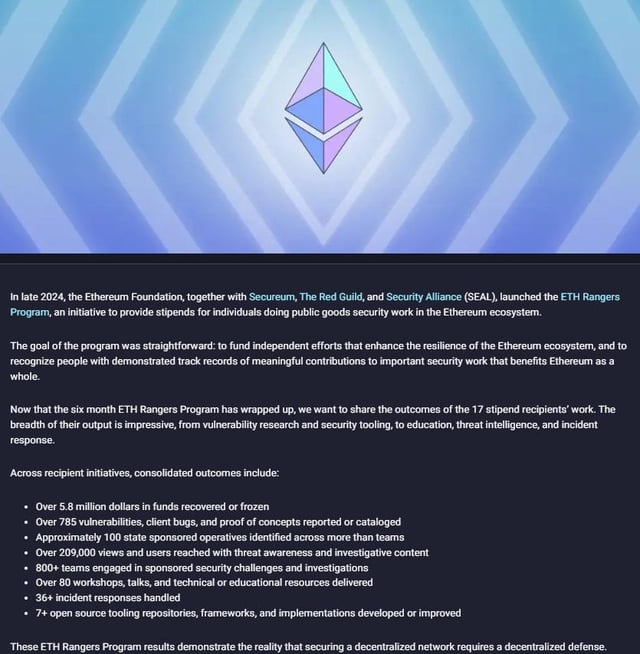 ETH ranger, the program that was launched in 2024 has secured or recovered over $5.8 million funds https://www.reddit.com/gallery/1so5bdi Posted by Creative_Ad7831