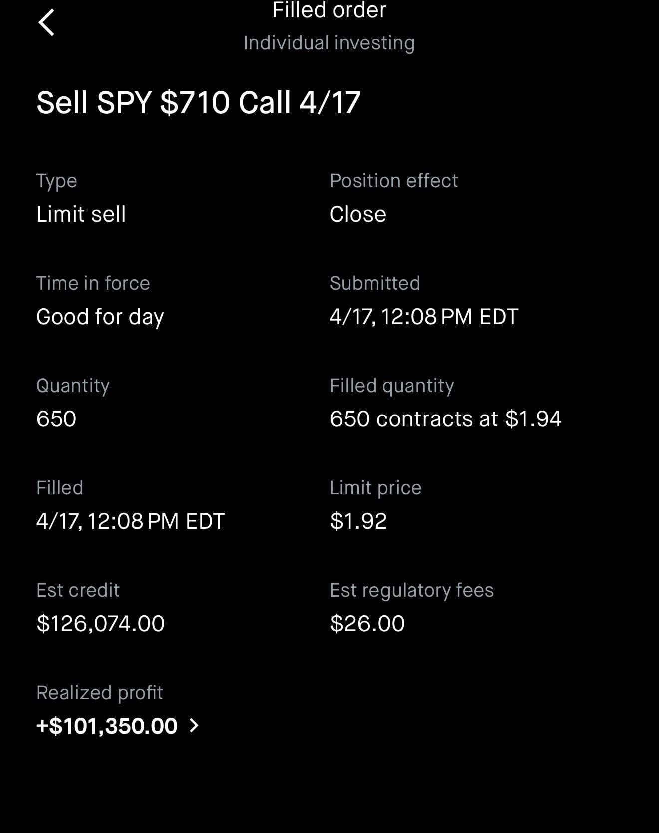 Congrats bro, seriously kicking myself for not buying those $697 calls on my watch list Monday…