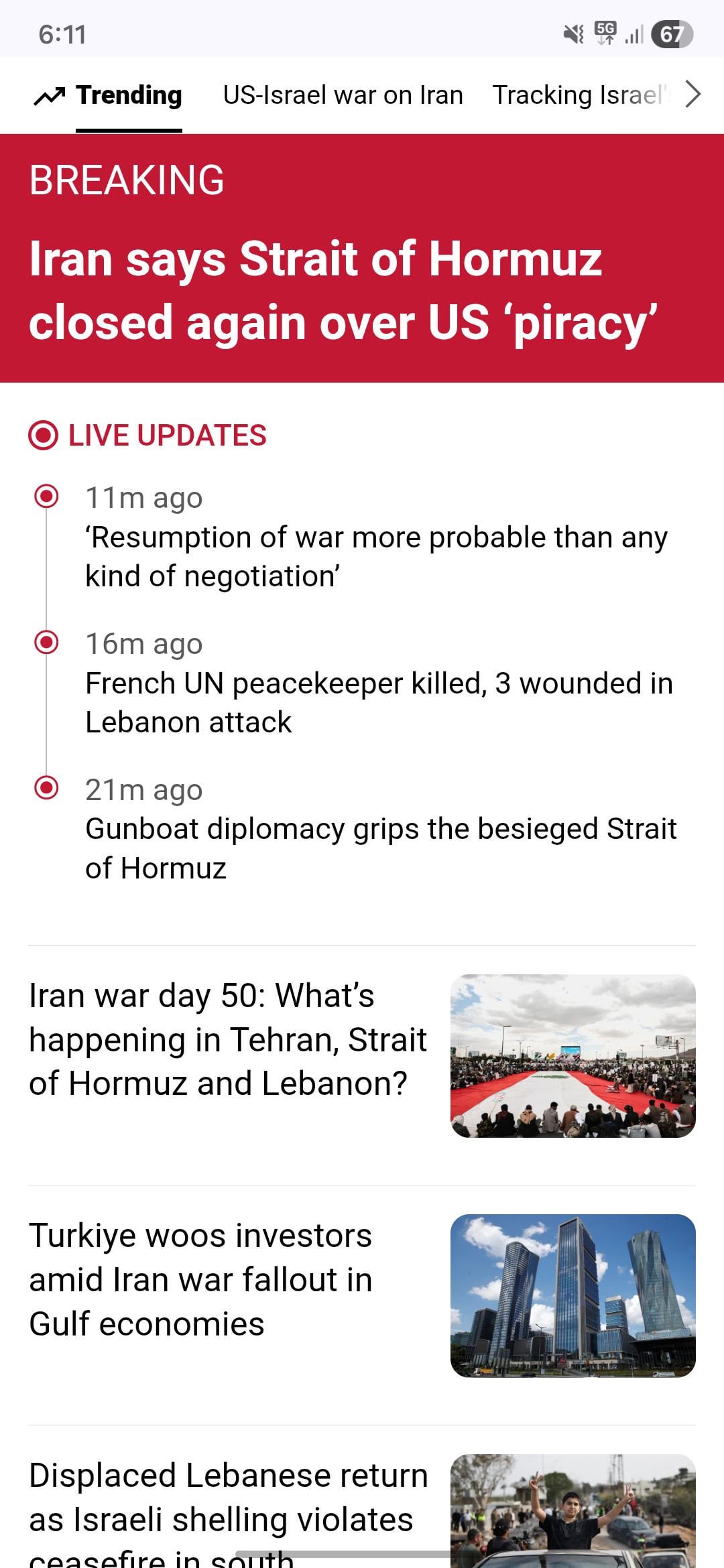 3. > A French soldier who was part of international ‌Forces stationed in southern Lebanon was killed, President Emmanuel Macron said on Saturday, adding ⁠that evidence suggests Iran-backed armed group Hezbollah was responsible for the attack.