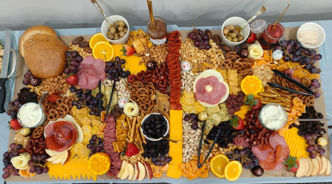 I was honestly so nervous putting the charcuterie board together. I had to use sliced cheeses, stretch everything as far as possible, and just hope it came together in a way that felt full and pretty.