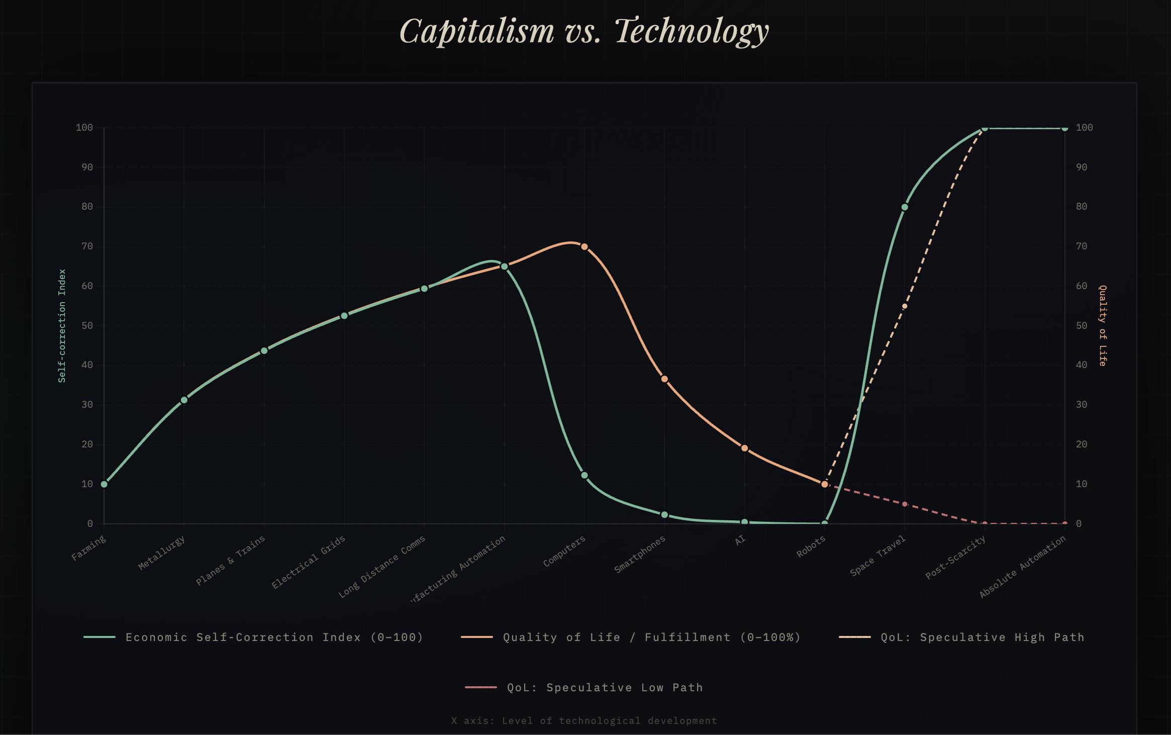 Theory: Our current level of technology creates a valley in our economy’s ability to self-regulate in a free market system, and quality of life is likely higher with either less or more technology.