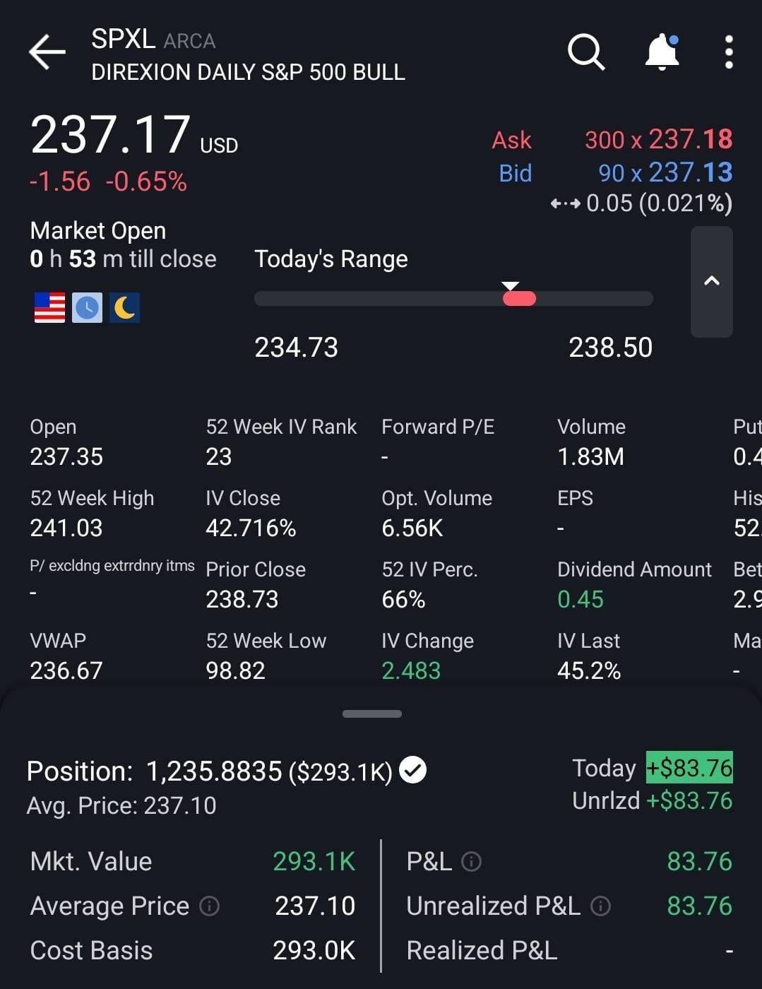 My mom’s retirement money all in on SPXL
