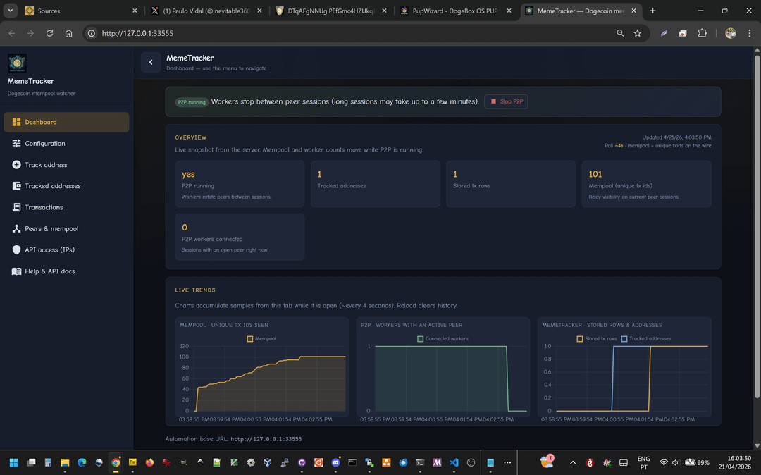 All Code available opensource to all Dogecoin Community on my GitHub: https://github.com/qlpqlp/memetracker