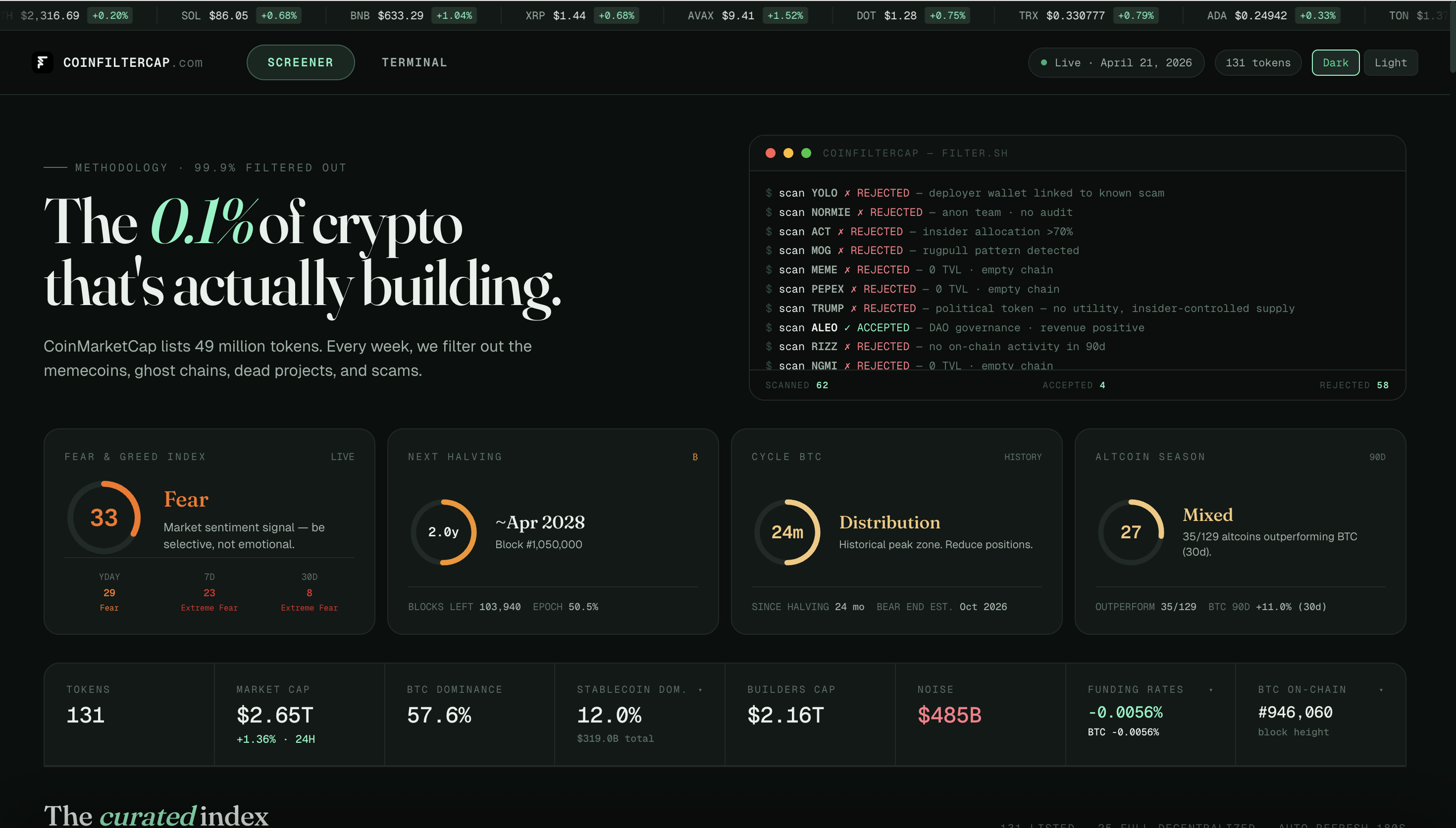 The concept is simple — it's like CoinMarketCap but with a strict filter applied: