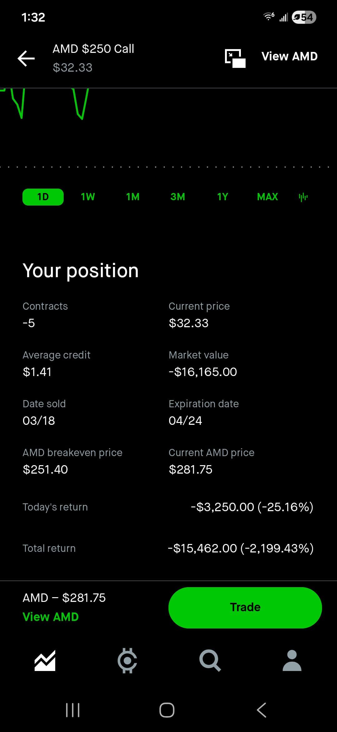 Sold way OTM calls and never did I expect for AMD to rip 40% in a month. I hope whoever bought these calls from me do something good with a portion of profits and that good and better things continue to happen to them.