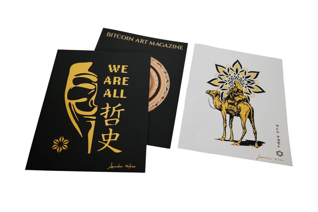 This auction is for set 3/21, the rest of the Patron's Edition Collector Sets /21 are sold out. You may still purchase the Genesis Edition magazine /1720, gold-foil cover magazine /210, and hardcover book /121 from https://bitcoinartmagazine.com