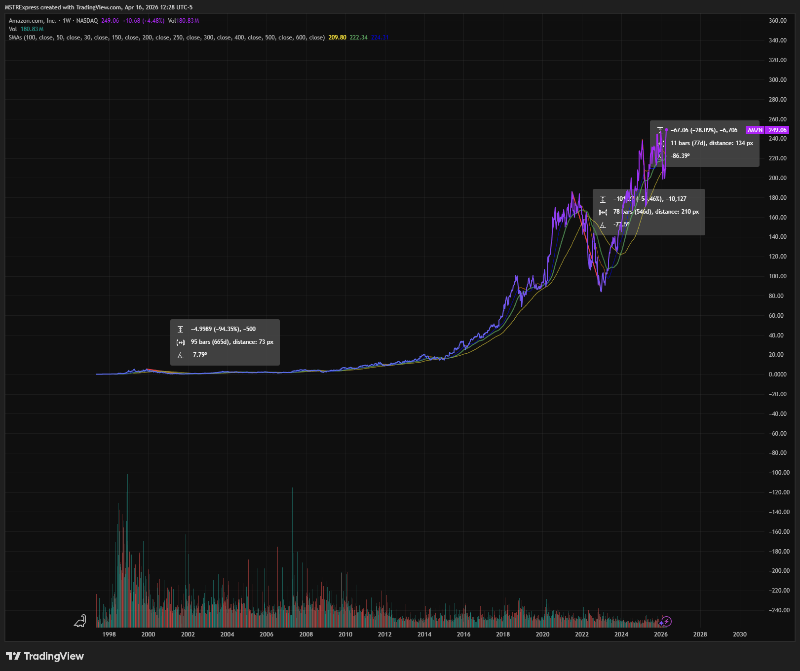 Amazon saw a 94% decline in share price that took 665 days to play out. You cant even see it on the chart (2000-2002). I'm not worried about a 50% retrace. Are you? https://www.tradingview.com/x/wAfYziYS/ What dip? I dont see a dip. byu/MECO-420 inBitcoin Posted by MECO-420