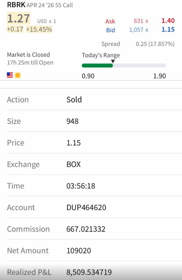 I wanted to share my recent RBRK APR '26 55 Call option trade and break down the reasoning behind it.