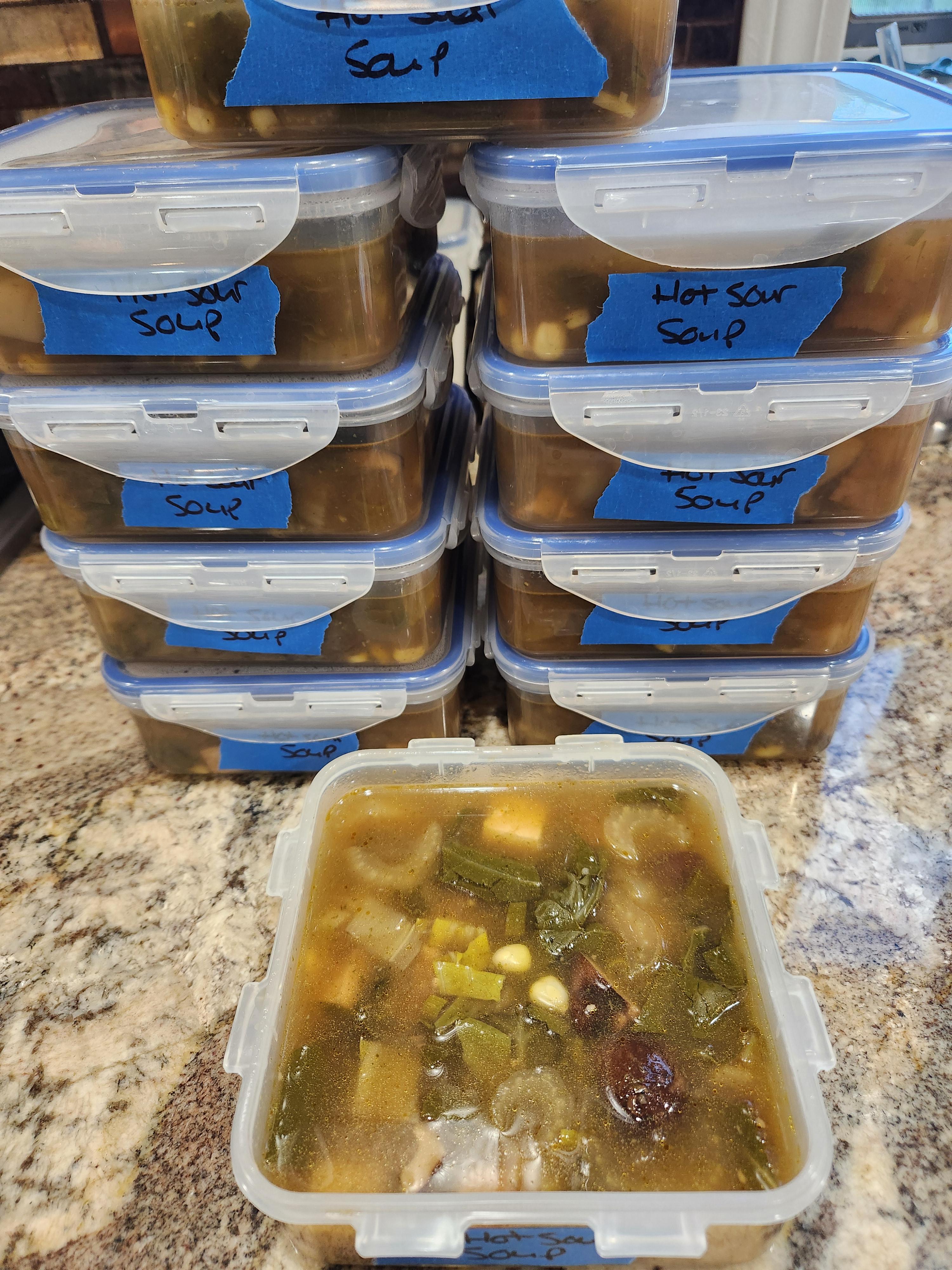 These will keep in the freezer and will get used in the next few work weeks. What i usually do is make another soup/stew and alternate between the two to keep from getting bored.