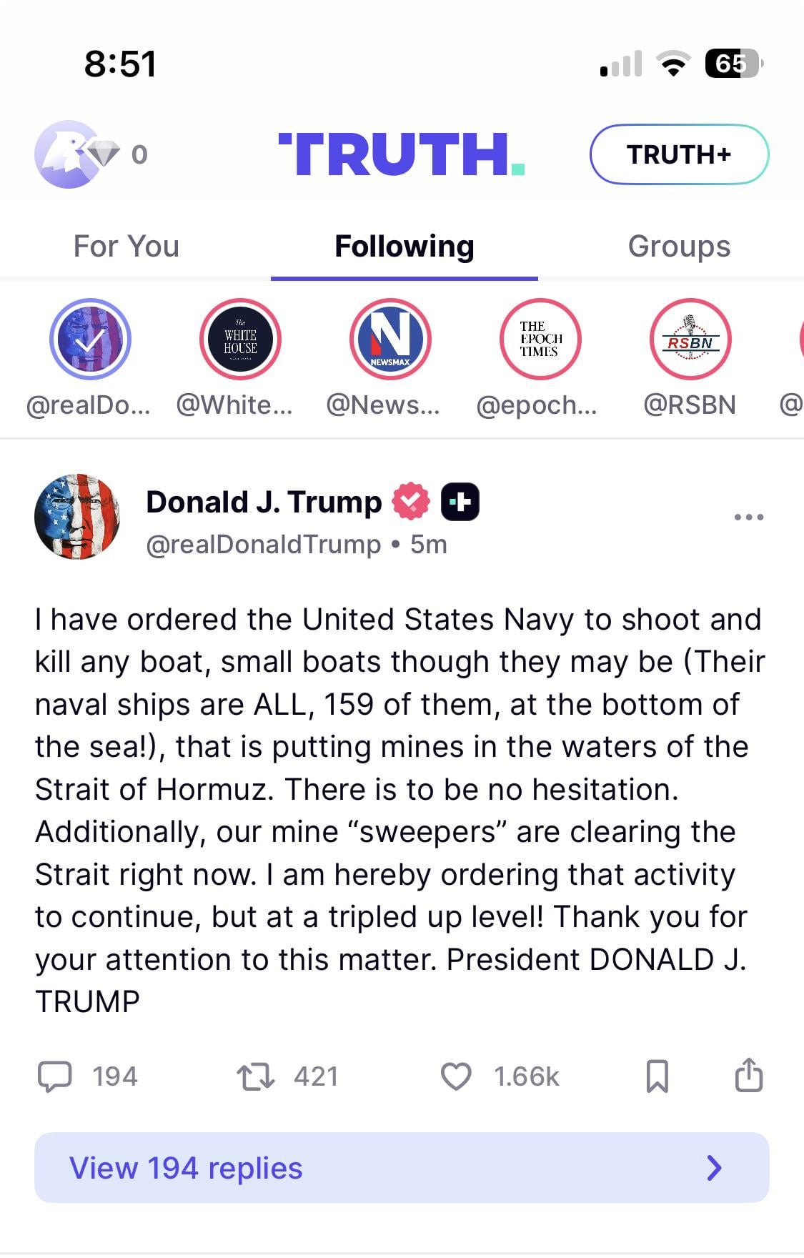 6. ah, so this is why the Secretary of the Navy got fired yesterday. he was probably telling Trump that this will lead to American casualties.