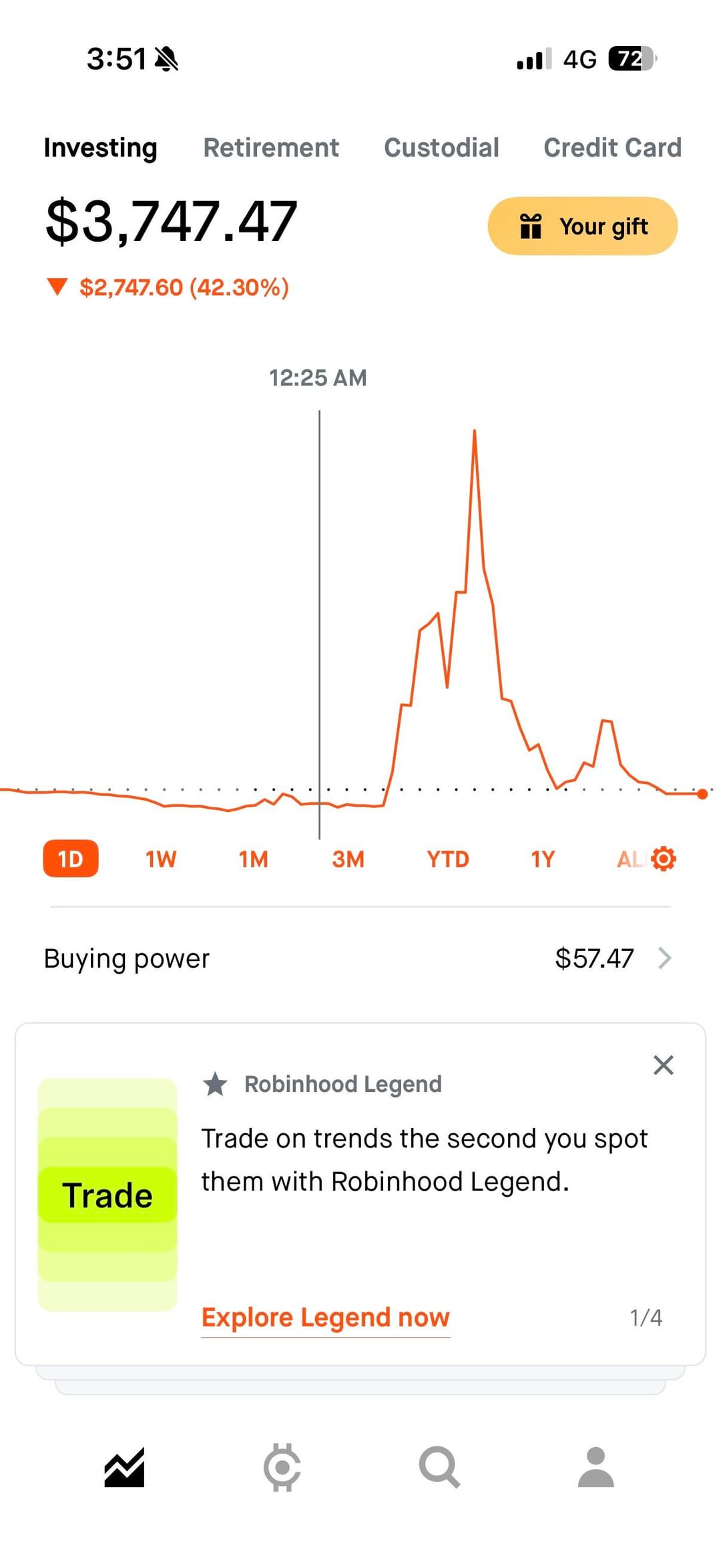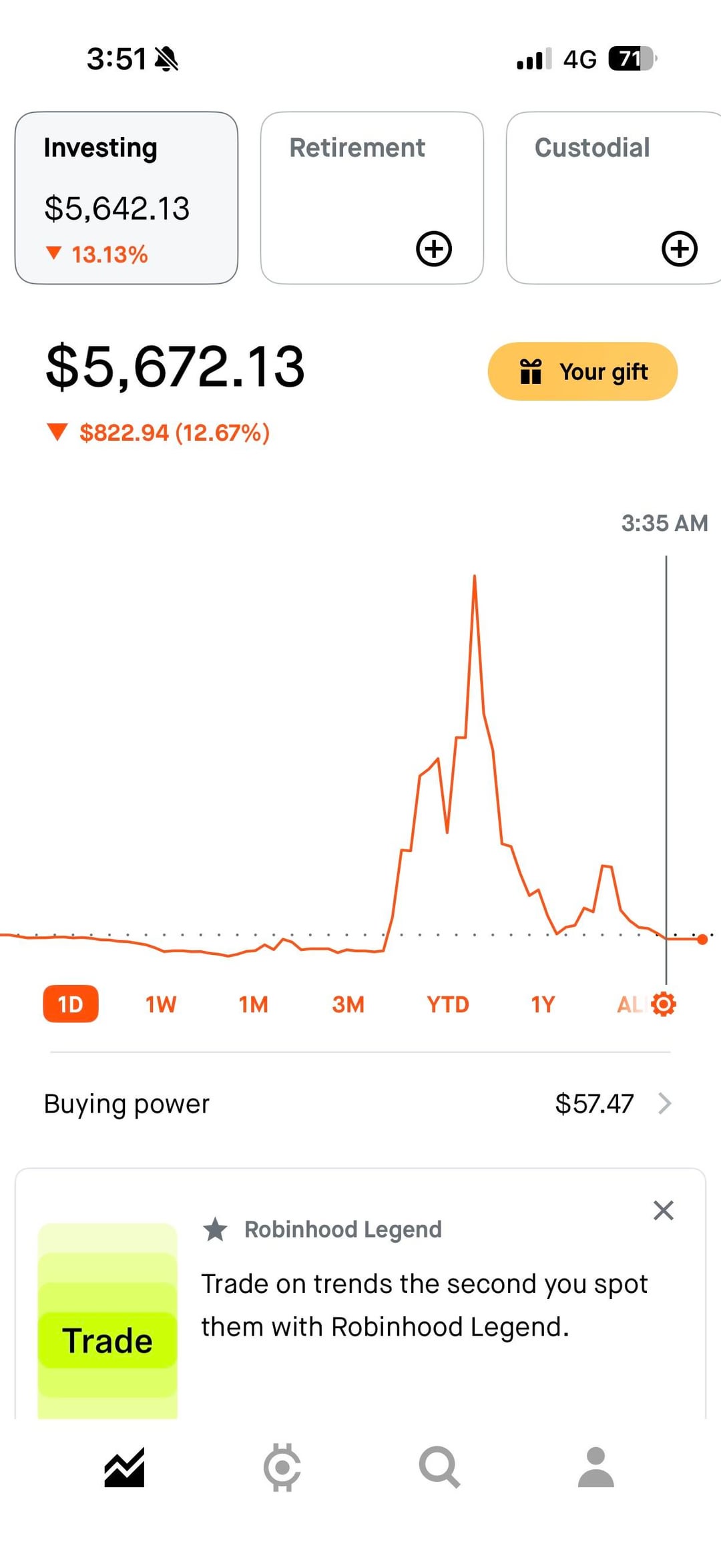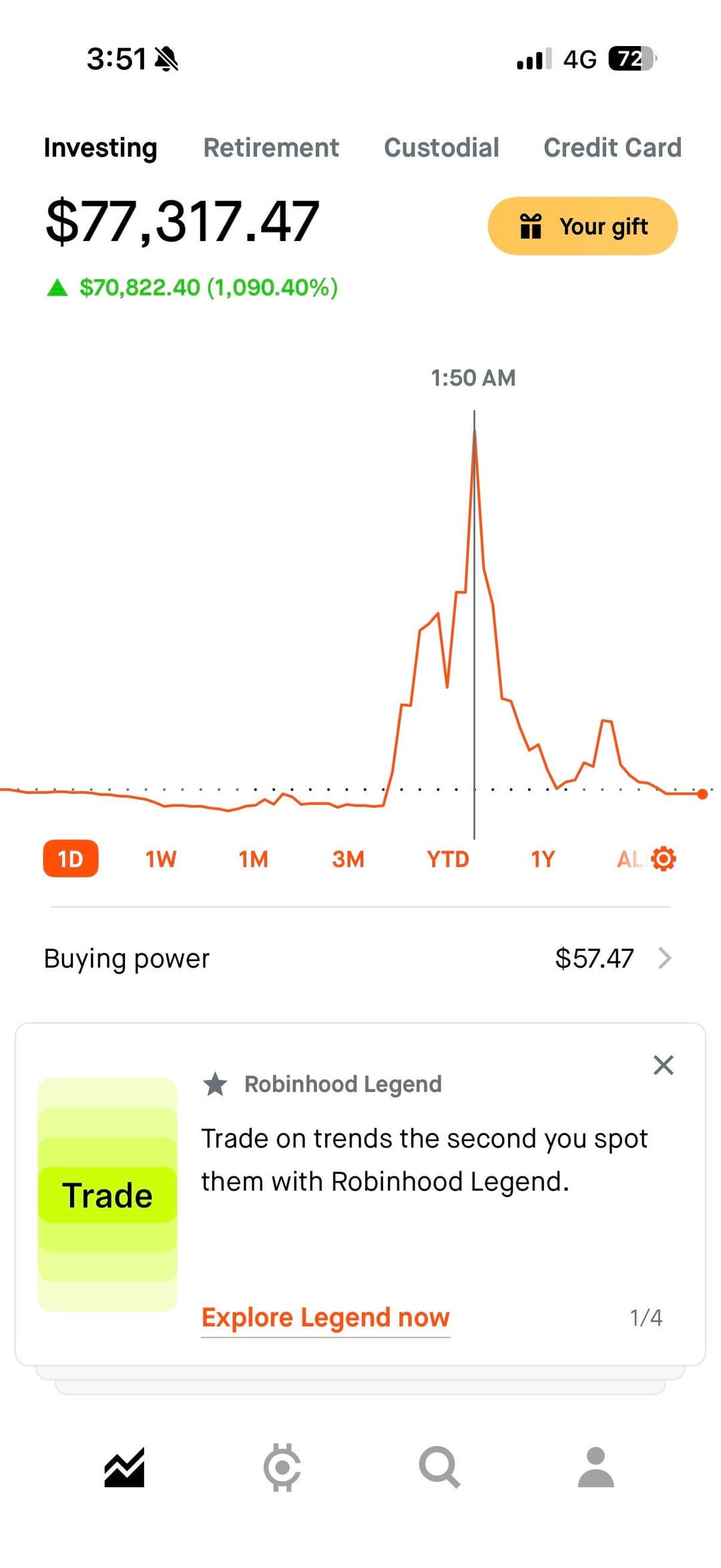 Long story short i Yolod a 0dte position of 190 x 707p, accidentally fell asleep while still holding roughly sometime just after midnight with my position sitting at a 60% odd loss. I woke up at about 3.30am and freaked out immediately checking my position and seeing it was at almost break even again. Sold it immediately and then noticed on my acc balance chart there was a huge spike to 77k from the 6k balance i had.