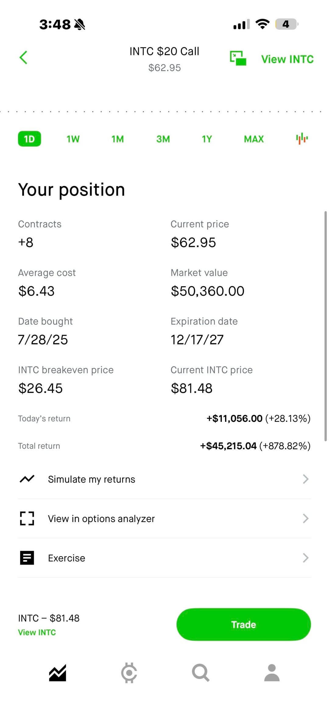 From AMC degen to ICT giga brain timing TQQQ bottom and INTC LEAPS is wild, congrats on actually making it out of the hole. Now the real boss fight is not sending it all back on some zero day SPY YOLO.
