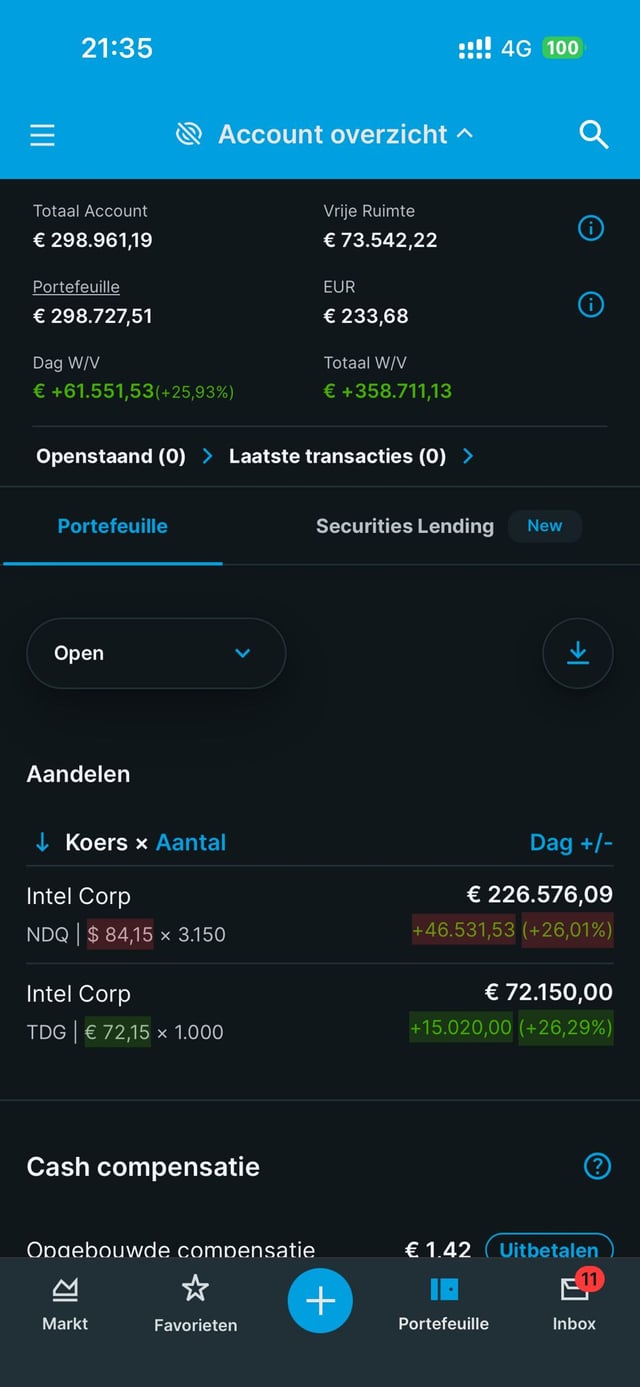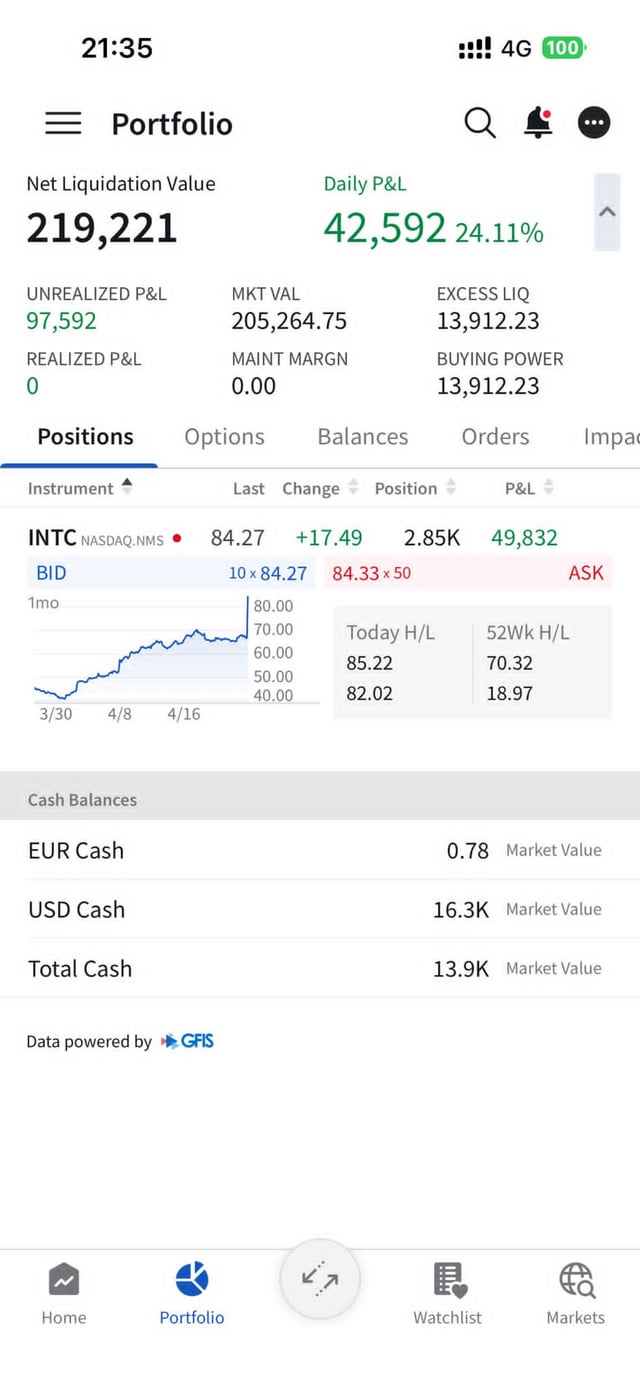 I initially bought 10k shares with a 23.5$ average (so total was 235k usd last year). When Intel hit ~45$ a while ago I sold 3k shares which has now allowed me to travel to Shenzhen and stop doing projects for other companies so I can focus on my own robotics projects and reinforcement learning / Sim2Real.