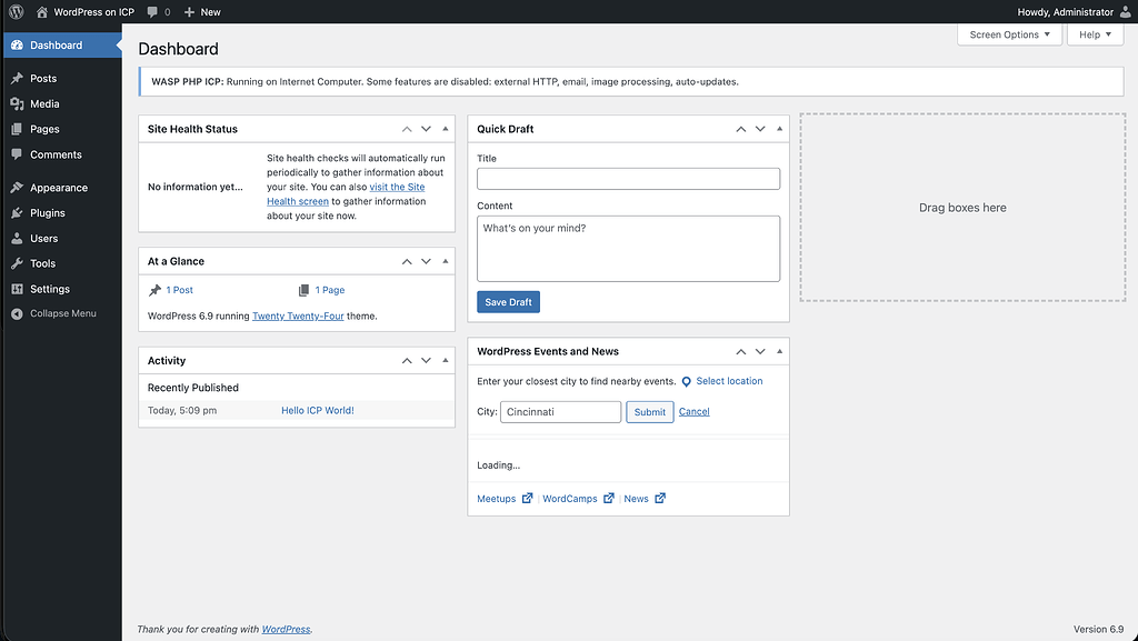 WordPress running 100% on-chain on the Internet Computer with PHP 8.5 and WASQL – Developers https://forum.dfinity.org/t/wordpress-running-100-on-chain-on-the-internet-computer-with-php-8-5-and-wasql/67986 Posted by Sassy_Allen