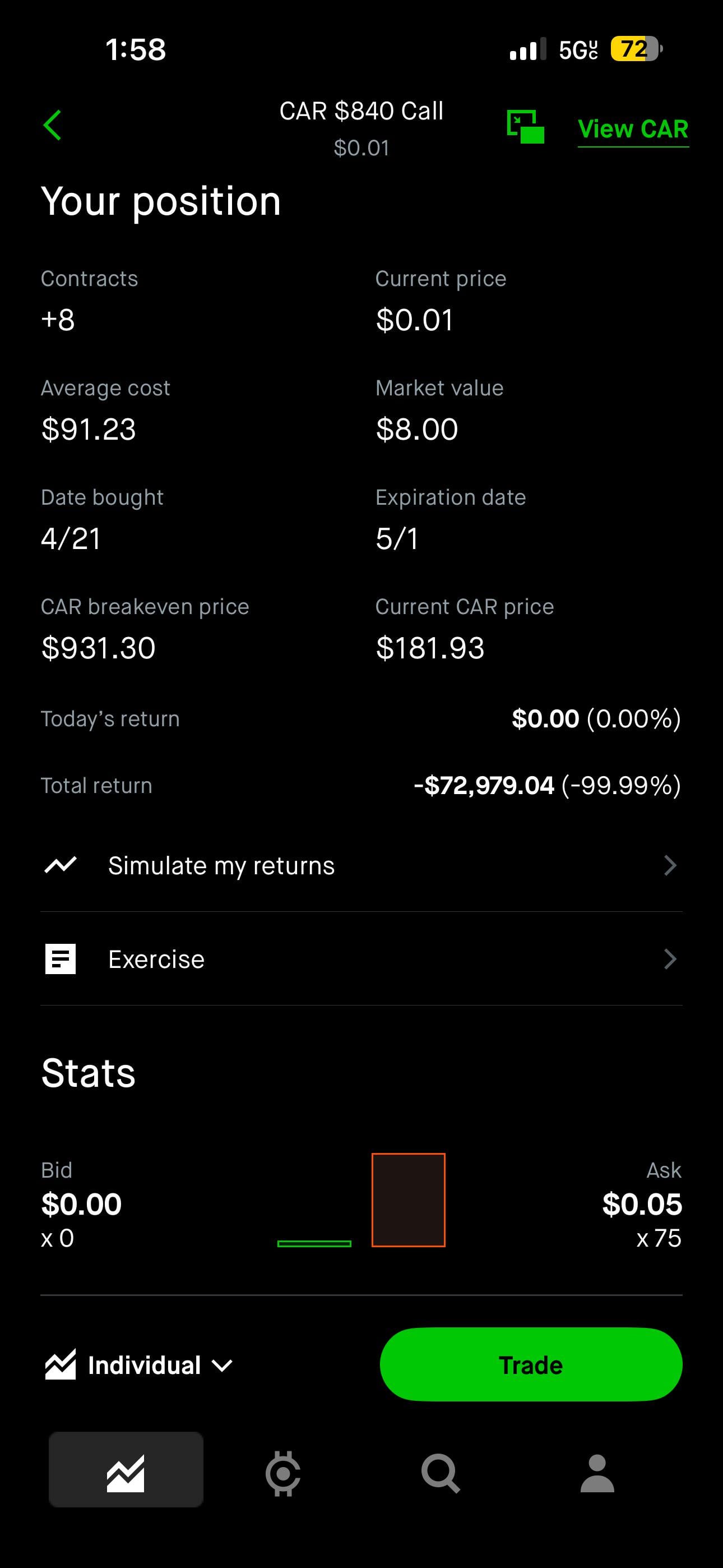 Why did you place that trade when CAR was collapsing??? 😂
