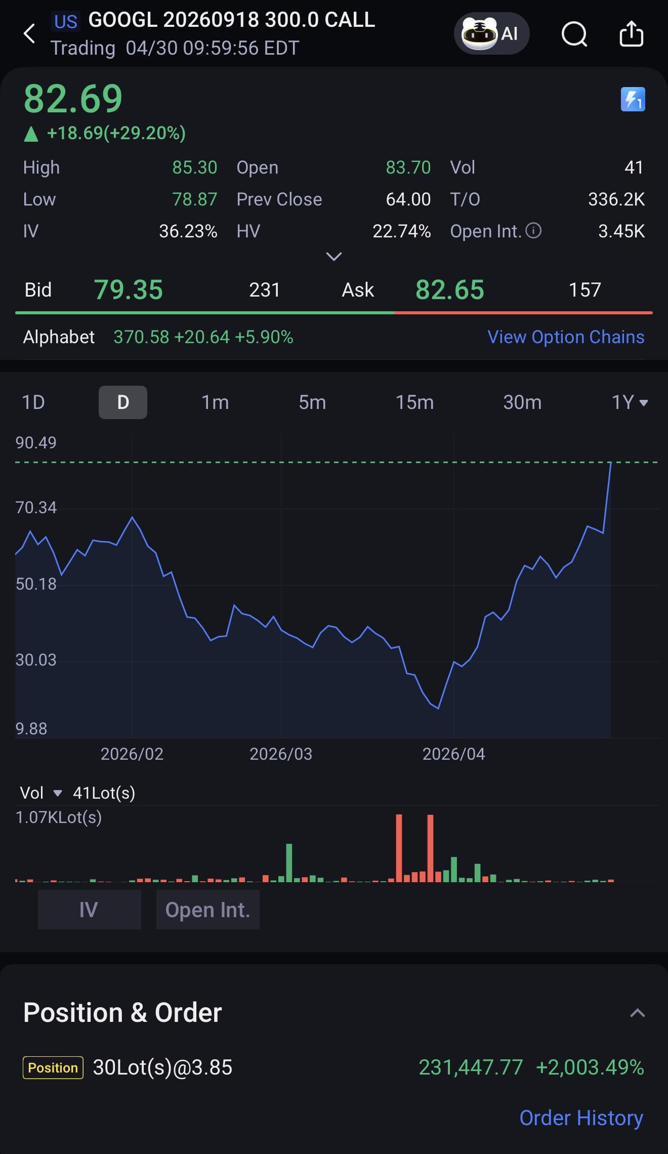 • Contracts: 30x GOOGL $300 Calls