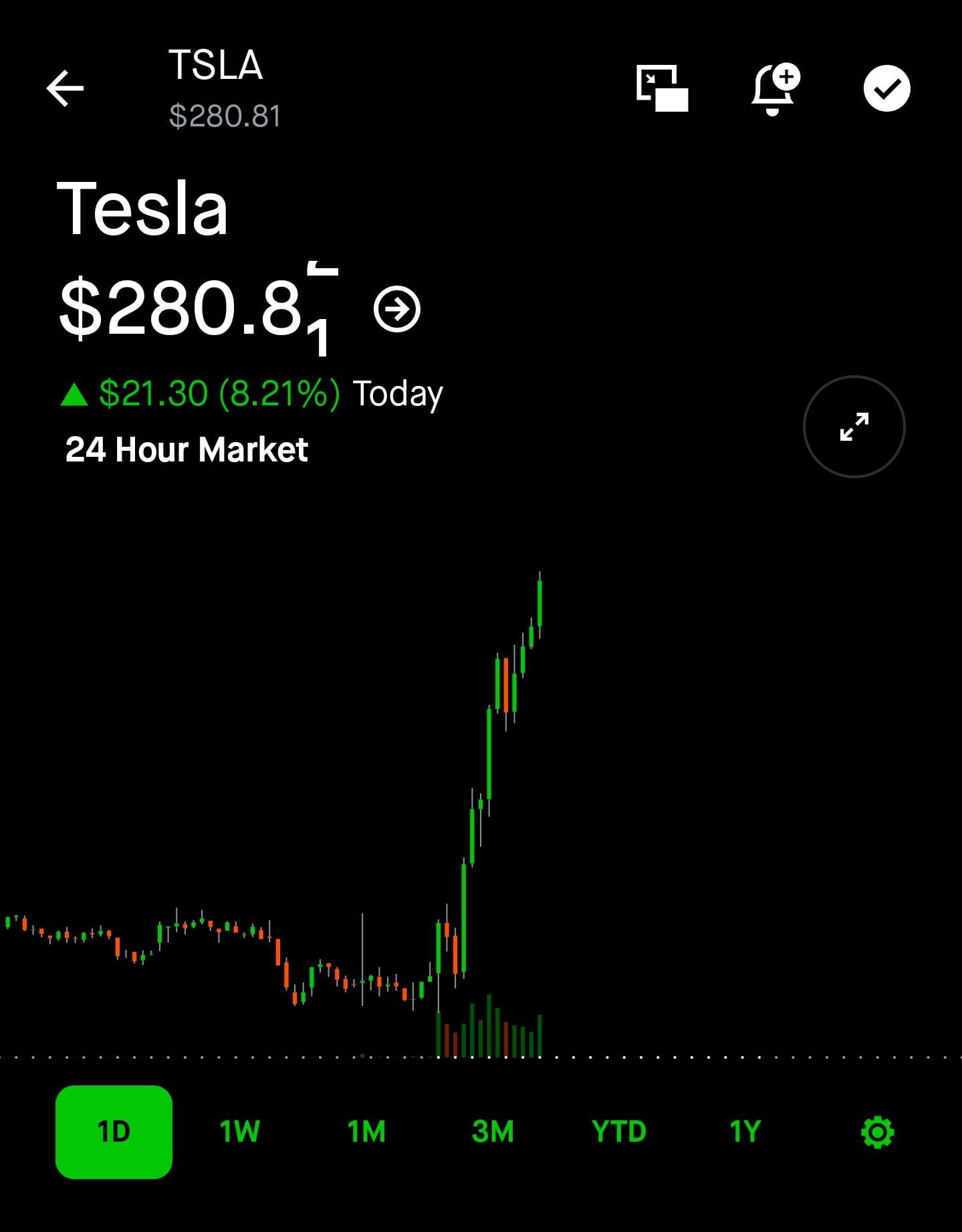 Was wondering if we’d get a Tesla post today. It’s been green for a few days now and wouldn’t you know it, silence on this sub.